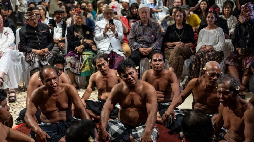 Seusai seremoni pembukaan, para pengunjung diantarkan puluhan penari kecak memasuki ruang pameran.