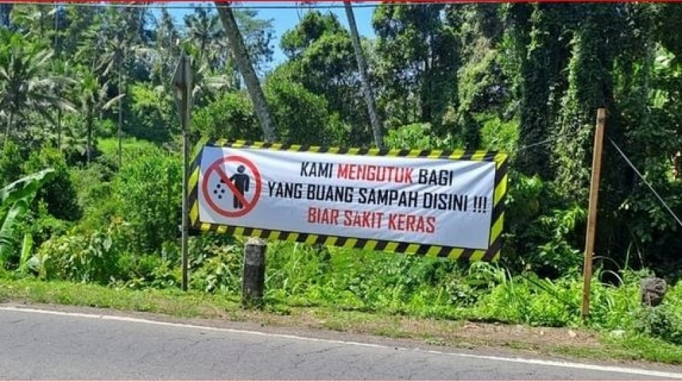 Di tengah kegagalan imbauan persuasif, pemerintah setempat mengambil langkah ekstrem dengan memasang spanduk larangan yang dibumbui dengan doa hingga ancaman kutukan penyakit di sejumlah titik rawan sampah.