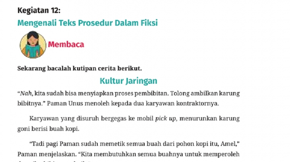 - Kutipan cerita "Kultur Jaringan" memuat instruksi paman mengenai pemilihan dan perlakuan awal bibit kopi.