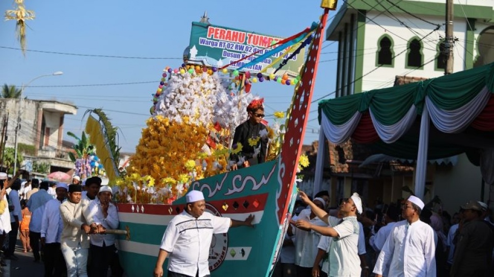 Tradisi ini dilakukan dengan mengarak ribuan butir telur memperingati Maulid Nabi.