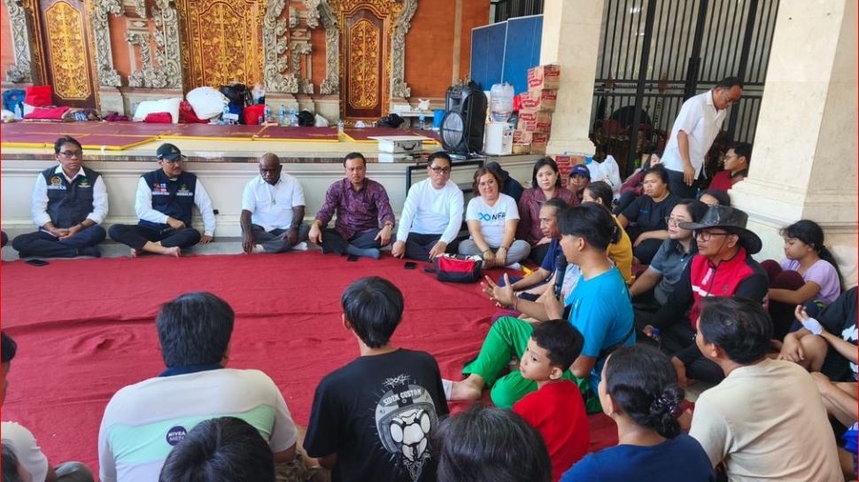SuaraBali.id - Menteri Sosial, Saifullah Yusuf turut mengunjungi Posko Pengungsian Banjar Dakdakan, Denpasar Utara, Jumat (12/9/2025).