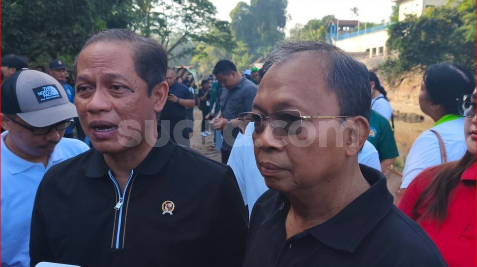 Menteri LH Hanif Faisol Nurofiq dan Gubernur Bali Wayan Koster saat ditemui di Taman Kehati, Denpasar, Jumat (26/9/2025) (suara.com/Putu Yonata Udawananda)