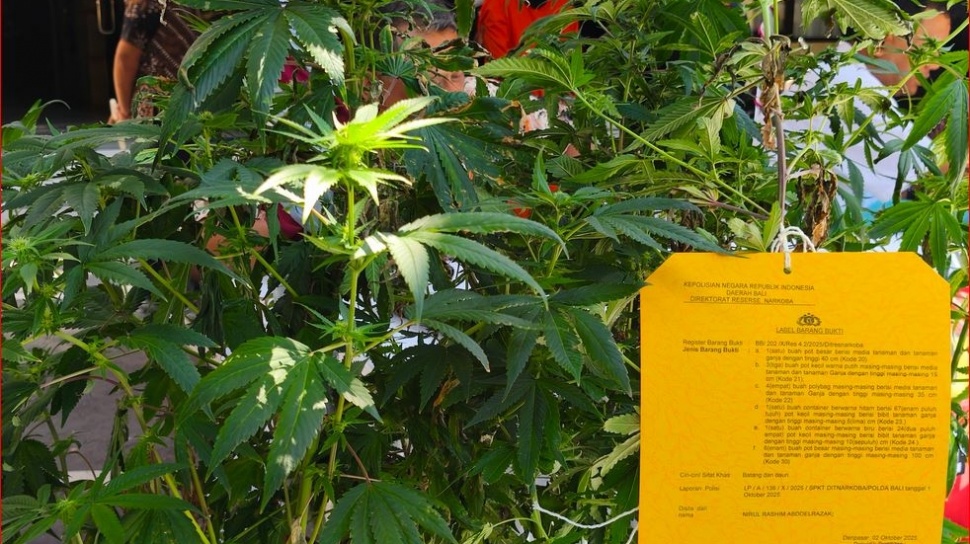 Polda Bali amankan WNA Belanda, NR, karena budidaya ganja hidroponik di Denpasar Utara (1/10/2025). Ditemukan kebun ganja dan peralatan pendukung.