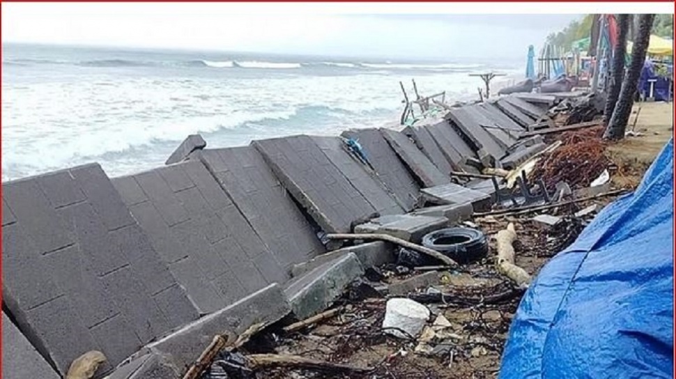 - Gelombang tinggi akibat bulan purnama merusak parah jalur pedestrian di sepanjang Pantai Kuta, Bali.