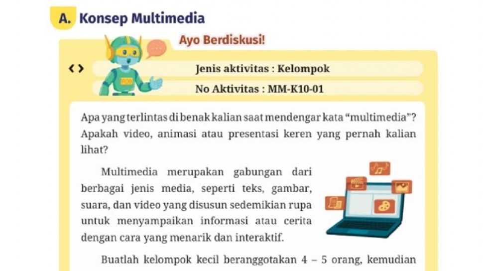 Melansir dari buku Koding dan Kecerdasan Artifisial untuk SMA/MA Kelas X (2025) karya Dela Chaerani, Bambang Subeno dan Budi Rahayu dalam BAB tersebut siswa mempelajari soal Konsep Multimedia hingga konten digital.