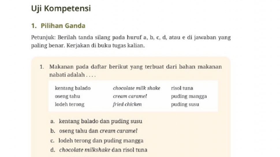 1. Makanan pada daftar berikut yang terbuat dari bahan makanan nabati adalah ….