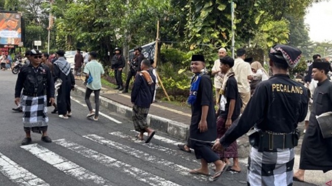 Pecalang desa adat membantu pengamanan Shalat Idul Fitri 1447 Hijriah di Lapangan Lumintang, Denpasar, Bali, Sabtu (21/3/2026) [SuaraBali.id/ANTARA]