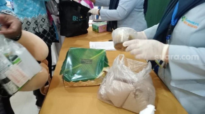 Sebelum istirahat, sejumlah pemeriksaan dilakukan petugas salah satu makanan yang dibawa oleh para jamaah.